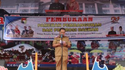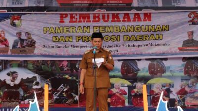 Mukomuko.- Bupati Mukomuko Sapuan Senin sore (20/02) resmi membuka pameran pembangunan dan promosi daerah dan pasar malam yang dilaksanakan dalam rangka perayaan hari ulang tahun kabupaten mukomuko yang ke-20. Adapun tema dari acara ini adalah “Bersinergi Untuk Perubahan Menuju Mukomuk Maju”.